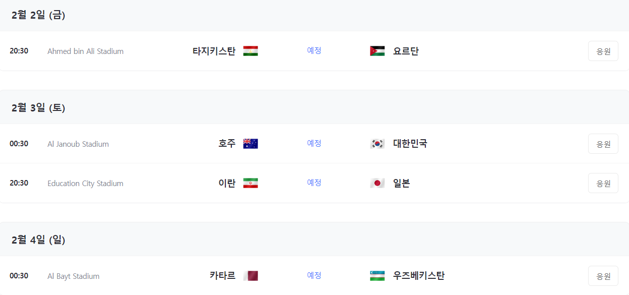 아시안컵 축구 8강 일정